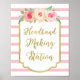 Headband making station sign poster for baby shower or birthday party in light rose pink and white stripes pattern with gold border, rustic pink and peach watercolor flowers and handwritten style lettering. Perfect for a baby showers or girls birthday party.