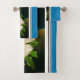 Beautiful collage of vintage botanical fine art of Giant Magnolia Flower Blossoms on Blue Velvet by MJ Heade is on this Floral Striped Blue Bath Towel Set. Images are public domain due to expired copyright. Collage is by me.