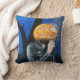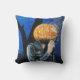 A spooky, Halloween throw pillow featuring the pastel artwork, “The Headless Biker”. This illustration features a pumpkin-head ghost wearing a leather jacket smokes a cigarette on a cold, dark October night. Original artwork: Pastels on paper. Copyright Dominic A. White. All rights reserved.