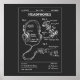 Vintage patent blueprint of headphones with labeled components in monochrome line art, offering retro tech flair for music lovers and design enthusiasts.