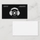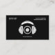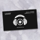 A black & white business card featuring an illustration of headphones with a vinyl record between the earbuds. It could be used for sound jobs, music and audio trades such as DJ and singer, mixer, music event organizer, etc.