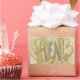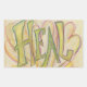 The word "Heal" is pale lime green and yellow in colour. Behind the word is soft pastel pink and yellow hearts. Inspirational artwork by Laurel Latto for DonnaBellas Angels.