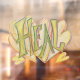 The word "Heal" is pale lime green and yellow in colour. Behind the word is soft pastel pink and yellow hearts. Inspirational artwork by Laurel Latto for DonnaBellas Angels.
