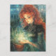 A beautiful green witch with red hair pours magic into her rosemary herbs in a greenhouse fantasy art