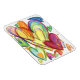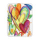 The refrigerator magnet art features overlapping hearts in a rainbow of colours. The heart images are both drawn and painted in watercolor. A single large heart is in the centre. The art is a tribute to the healing power of giving and receiving love in our lives.