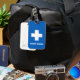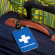 Personalised Medical Equipment Luggage Tag in blue. It is perfect for anyone transporting medical equipment, for a medic, a health professional or a diabetic to display on their luggage and have a medical alert label.