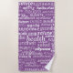 Custom Colours - Health Text Purple Beach Towels - Multi Language International - Be Healthy - Customisable - Add Your Language Text - "HEALTH"