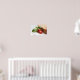 Poster print of healthy Italian food consisting of a panini sandwich and a tomato, green basil leaves and mozzarella cheese on a white background.