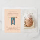 Herald trumpet with flag, calligraphic letters for mediaeval themed birth announcement. Add more text or photos to the back if desired. Real foil text and accents, choose from gold, silver or rose gold. Foil will print thicker than shown on screen.