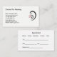 Hearing aids hearing centre business cards and appointment template combination designed with an ear logo you can use on our cards or replace with your own business logo. A classic layout lets you customise the design your way for a hearing clinic, Ear Doctor also known as an Audiologist, or a hearing aids retail store.