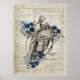 Heart Anatomy with blue flowers accent and background of vintage dictionary text. Perfect for gift and decor for cardiologist, heart surgeon and all cardiology healthcare professionals.