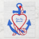 Red and blue heart nautical anchor with rope graphic on rustic whitewashed wood background.