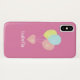 Heart and balloons in yellow, light blue and pink colours on rose gold background iPhone X Case. Name ready to be personalised.