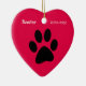 Your special dog friend will be missed at Christmas, but you can keep her or his memory alive with this wonderful memorial Christmas ornament for pet dogs. The design is featured in red on a heart shape ornament with a giant paw print in the centre. You can customise the design with the name of your dog and the years. On the back of the heart are the words "Our beloved canines leave forever imprints on our hearts." A lovely memorial Christmas ornament for the pet animal lover and especially for the dog lover. Copyright ornamentsbyhenis