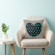 Heart Anniversary Pillow, w Names/Date; Black/Aqua; Large Black Heart with smaller turquoise & white hearts inside, on grey pillow; customise with couples' names on front of pillow, and anniversary date on the back of the pillow