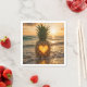 A glowing heart expertly carved into a vibrant tropical pineapple in a serene ocean water