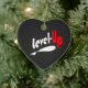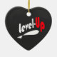 It's an upbeat heart ornament in black designed with level-up catchy phrase/words