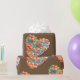 Colorful heart art collage with hippie car, hippie van, red heart and butterfly wrapping paper.