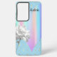 Heart Design in rainbow colours, white rose, faux gold roses on blue Galaxy S21+ Case. Thanks to Creative Fabrica for some of the elements in the design. The name on the case can be changed.