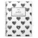 Customisable notebook featuring black heart doodles. Other colours are available.
