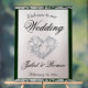 This Wedding Welcome sign features an elegant white pearl satin background with ribbon with glitter borders, an intricate scroll heart, the names of the bride & groom and date of event in elegant script. (Ribbon & glitter are simulated in artwork) Perfect for the simple to most elegant wedding. Also available with different coloured ribbon for your wedding theme colours. Designed to coordinate with the "Romantic Hearts, Ribbon & Sparkle on Pearl" collection. To change details, click «Personalise». To move the text or change the text size, font, or colour click «Click to customise further»