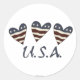Stickers with three hearts with the American stars and stripes with U.S.A. lettering.