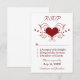 Simple yet elegant Heart Flourish Wedding Response Card design in dark red featuring a big heart decorated with cascades of flourishes and dots flanked by smaller whimsical hearts. This stylish wedding RSVP card sets the tone for a sophisticated affair. Easy to customise, simply add the details of your wedding day in the fields provided. Click on the "Customise It" button to find additional personalisation options.