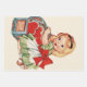 A cute retro style from the 1950s, this little girl is opening up her box full of hearts. From a vintage valentines card.