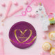 Heart Gold Ribbon Happy Valentine's Day Purple Paper Plate
