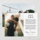 Monogrammed wedding thank you card printed with two of your wedding photos, a smaller one on one side and a larger on the other side. A thank you message and your wedding date printed in black text against a white background with your names in a modern signature script. Your initials above a heart and greenery divider. White photo wedding thank you card personalised with your initials, and your names in a signature script.