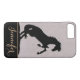 A silvery mauve background with a smoky mist design with the black silhouette of a horse. Personalise with your name. Have more than one case to suit your style or mood for the day! Designed by Robin Cox.