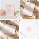Cute baby shower sticker featuring a pastel pink striped background paired with a hand-drawn hot air balloon and an elegant serif font in which your personalised information is written in. You can find more matching products from this collection in our store.