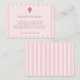 Cute baby shower books for baby card featuring a pastel pink striped background paired with a hand-drawn hot air balloon and an elegant serif font in which your personalised information is written in. You can find more matching products from this collection in our store.