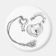 Pen and ink drawing of a heart-shaped lock and key on an magnet. Magnets available as square and circle shapes in different sizes. Artwork: Pen and ink on paper. Copyright: Dominic A. White. All rights reserved.