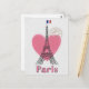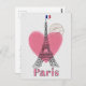 Heart Love Paris Eiffel Tower Postcard with customisable text on the back.