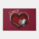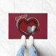This heart-themed doormat features a striking maroon background, adding a touch of elegance and charm to any entryway. Its design not only enhances the esthetic appeal of your home but also serves a practical purpose by keeping dirt and debris at bay. Ideal for welcoming guests, this doormat combines functionality with a warm, inviting message.