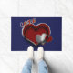 This heart-themed doormat features a striking navy blue background, adding a touch of elegance and charm to any entryway. Its design not only enhances the esthetic appeal of your home but also serves a practical purpose by keeping dirt and debris at bay. Ideal for welcoming guests, this doormat combines functionality with a warm, inviting message.
