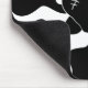 A melting black-and-white heart with a scar on a sea of black-and-white waves is a trendy design with retro vibes.