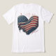 This powerful and evocative image depicts an American flag shaped into a heart, symbolising love, patriotism, and national pride. The design's distressed texture and bold colours create a striking and memorable piece.
