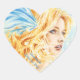 A board of heart-shaped stickers. With the face of the "Fairy of the Dawn" / "Fairy of the Dawn" by artist Lucidaëlle. Superb. Stick everywhere!