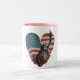 The "Heart of Liberty" mug design features a striking and symbolic image centred around a bold heart shape that radiates patriotism and freedom. The heart is filled with an American flag motif, blending the stars and stripes with vivid red, white, and blue hues. The design is accented with subtle distressed textures, giving it a vintage, timeless feel. Around the heart, there are elegant swirls and flourishes, symbolising unity and strength. The overall aesthetic is both inspiring and stylish, making this mug a perfect tribute to American liberty and pride.