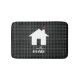 Bath mat featuring the drawing of a house with a heart above its chimney and "Smith's HOME" underneath the house, all on top of a 3D net simulation. All the properties of the design components (e.g., its fill and border color, size and orientation) can be customized. To simply change "Smith's" and HOME, choose "Personalise this design" and make your changes. To make more changes, follow the steps below: