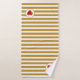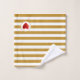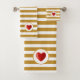Elegant towel set with beautiful heart with golden and white stripes on the background. Chic modern towel set.