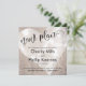 This distinctive card could be the perfect way to announce that your wedding date has been changed. The background has been covered in an image depicting a subtle light brown weathered board. Overlaying that is a partially-opaque heart with a vintage painted watercolor white surface that enables your background colour to show through. I've used a distinctive modern font with swirling accents to create a graphic depicting the words "new plan" which is positioned at the top, quite large. Use template fields to add your personal details and update the placeholder message as needed. I'm happy to help with customisation if you need assistance. // 57 //