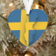 Show your love for the cold, snowy and frosty Sweden with a heart shaped ornament (3"l x 2.8"w x .187"d) with the Swedish flag and an outline of Sweden on one side and a snowflake on the other.