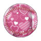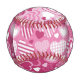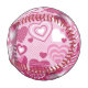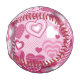 A vibrant pink baseball adorned with various heart patterns in a bright cheerful setting.