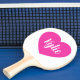 Ping pong paddle is shown with a pink heart shape with a sample name, customise this item and change the sample name to yours with this template.