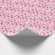 This gift wrap features a pattern of red and pink hearts against a light pink background.