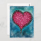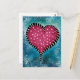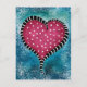 A chunky whimsical pink heart with snakey black striped trim on a dappled blue and turquoise background with white highlights.