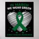 Heart Ribbon In March We Wear Green Kidney Disease Poster